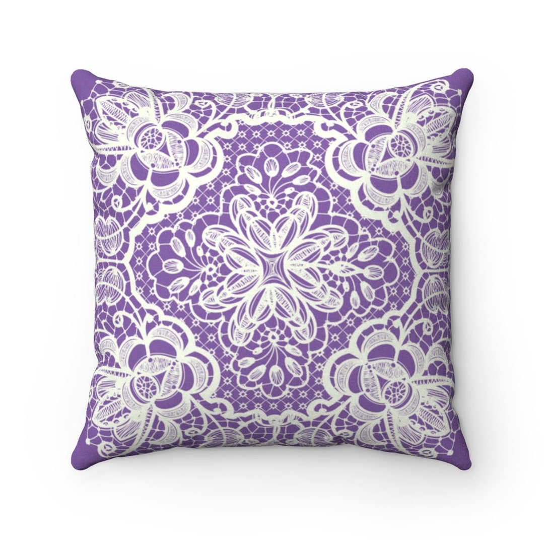 Spitzenmuster Lavendel Kunstleder Quadrat Kissenhulle Etsy De